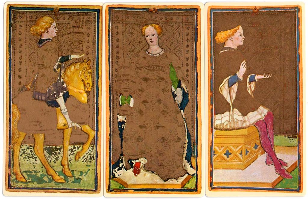 Cards from the facsimile edition of “I Tarocchi dei Visconti” published by Dal Negro, Treviso, Italy.